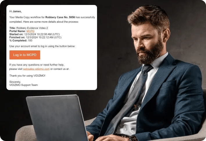 VIDIZMO ensures you stay informed about every critical evidence activity, whether it’s a playback, download, re-upload, or more. Notifications are instantly sent to your email to keep you updated.